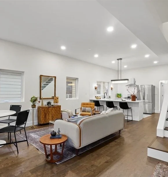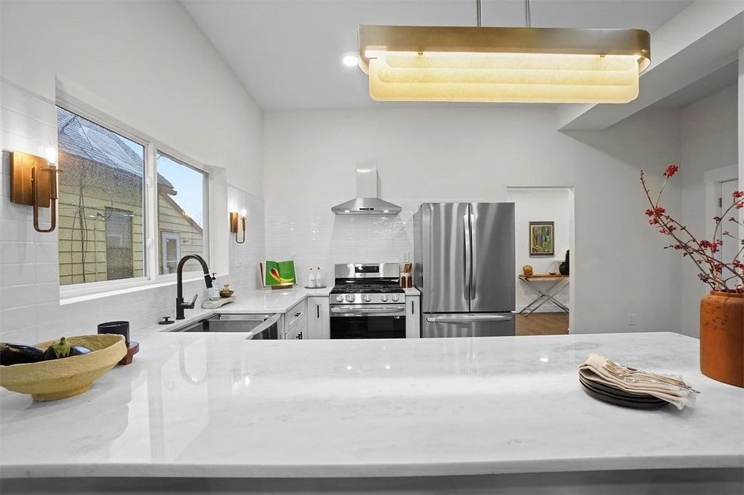A 2023 new build on a quiet street steps from Lorain Avenue, with designer finishes and thoughtful layout details throughout.