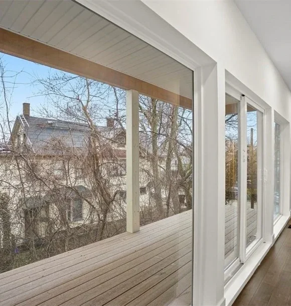 - 9-foot ceilings with large windows and wood flooring